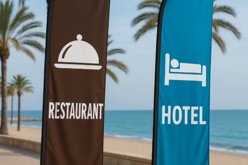 En una campaña promocional instalamos banderas de exterior en puntos estratégicos del perímetro del negocio, con ofertas claras. Aumentamos la visibilidad desde la carretera y duplicamos la captación de clientes respecto al año anterior.